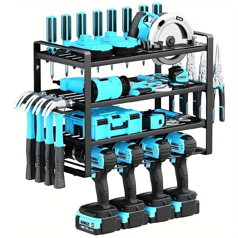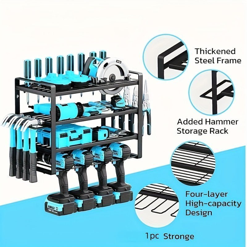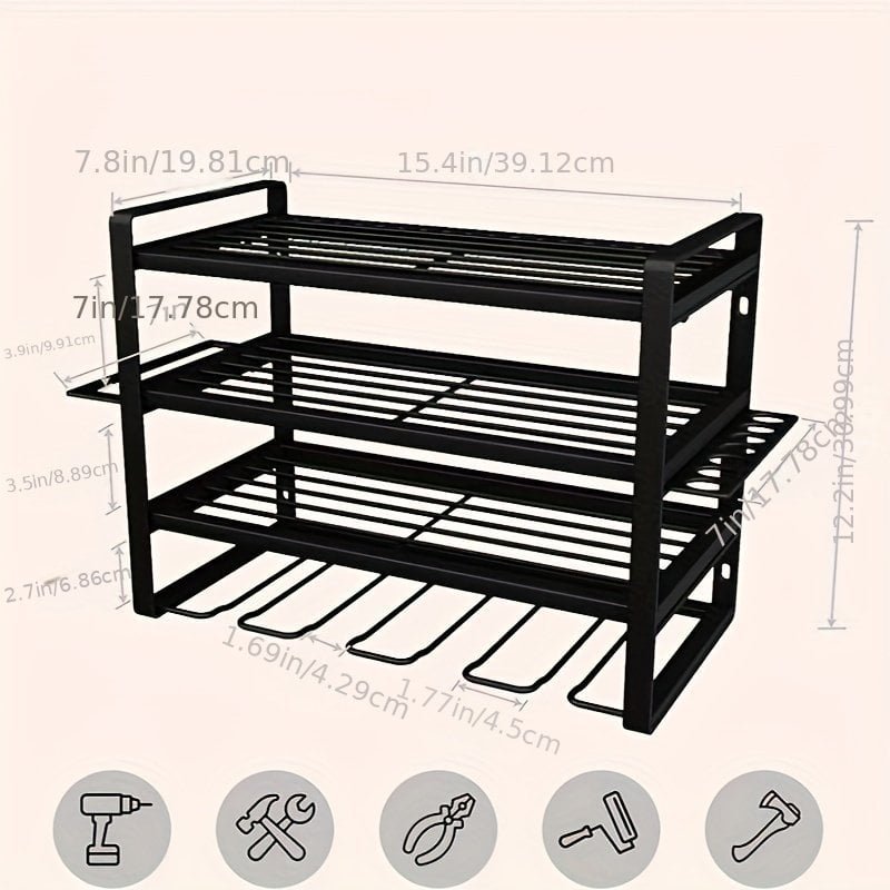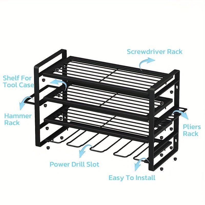 1pc Garage Tool Storage Rack. Electric Tool Storage Rack. Simple Assembled Multi-layer Storage Rack. Household Multipurpose Organizer Shelf