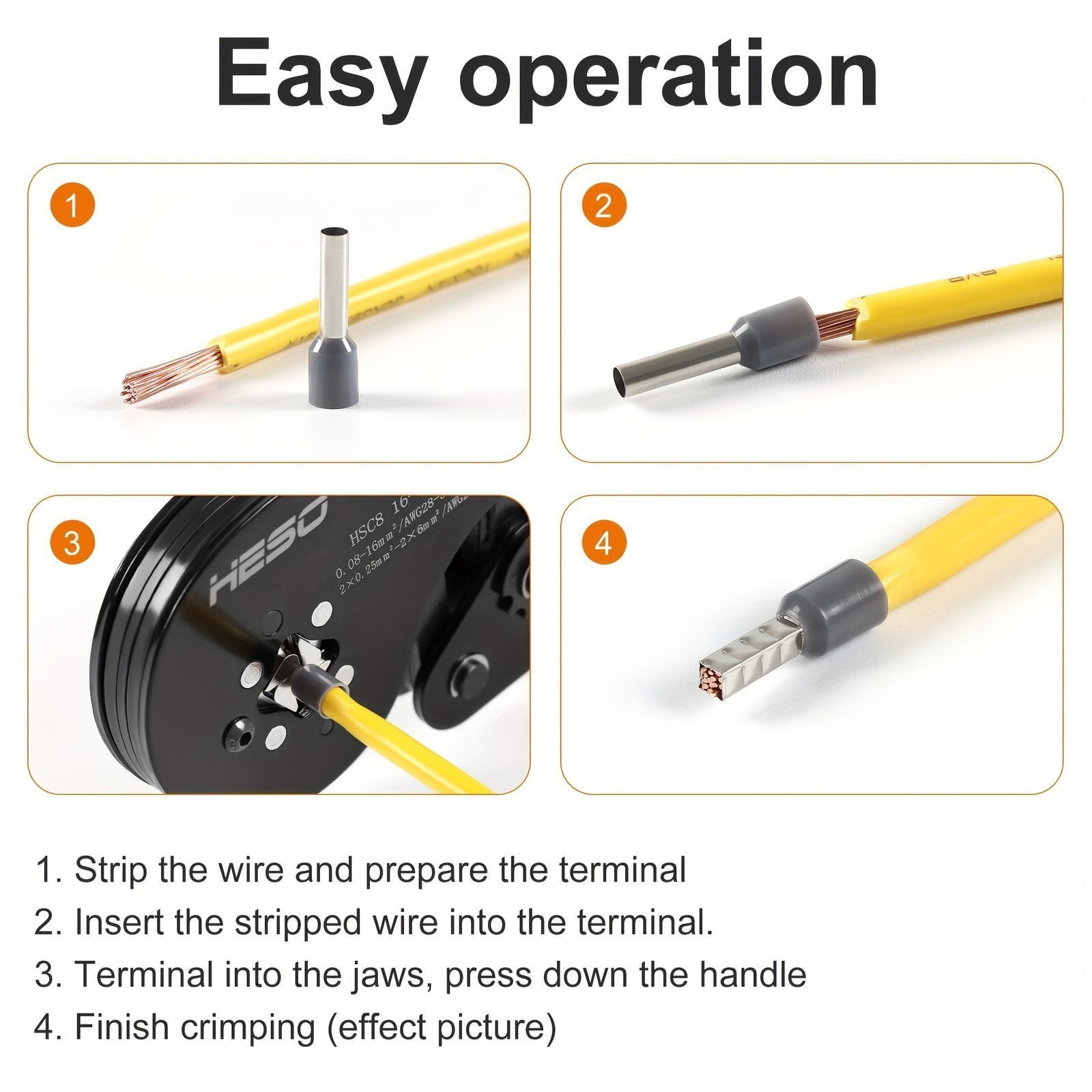 1pc Self-adjusting Ratcheting Square Crimping Tool For Awg28-5 (0.08-16mm). Wire Crimper With 1000pcs Tube Terminals Set. Electrical Wire Connector Tools Kit. 8.5 Inchu002F207mm