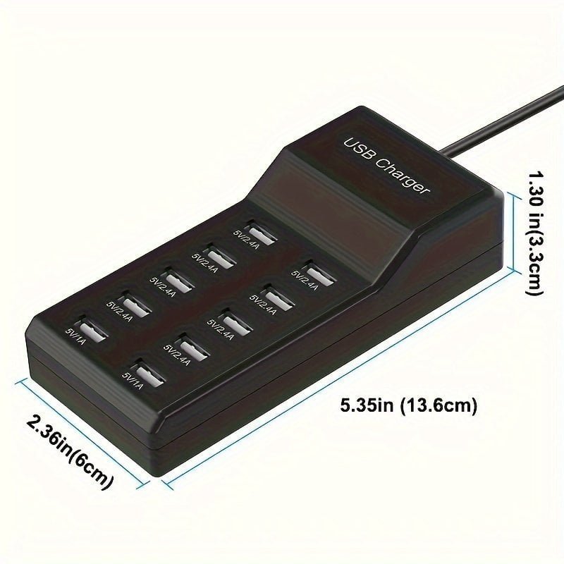 50W10 Port USB Mobile Phone Charger 5V2.4A Multi-port USB Charging Stake Charging Station Compatible With Android Apple System Various Models Of Mobile Phones. Tablets. Earphones. Smart Watches. Bracelet Charging