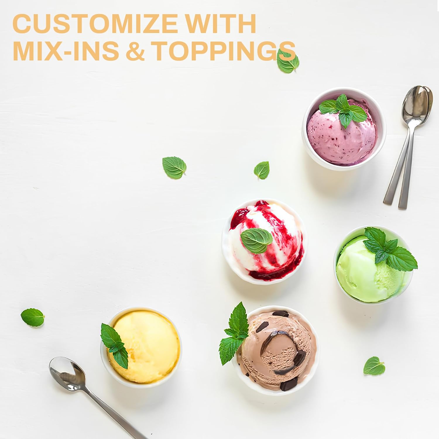 Pukomc Ice Cream Maker Machine for Home Use, with Two Ice Cream Bowls,Simple Operation and Easy to Clean,White